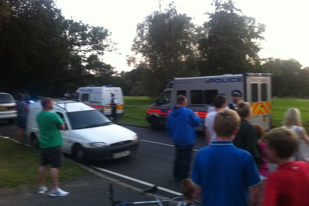 Around 50 uniformed officers surrounded a large area of parkland to hold off the hordes of angry locals.
